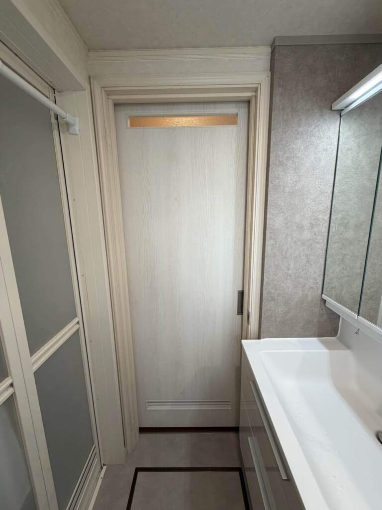 さらに、入口を「開き戸」から「引戸」へ変更。扉の開閉スペースが不要になったことで、限られた空間でもスムーズに移動できるようになり、脱衣時のストレスも解消されました。