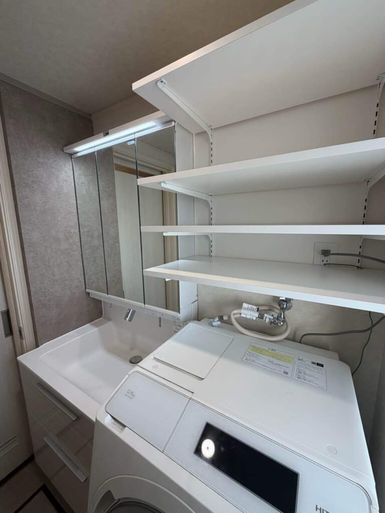 2. 空間を無駄なく活用!「洗濯機上の造作棚」