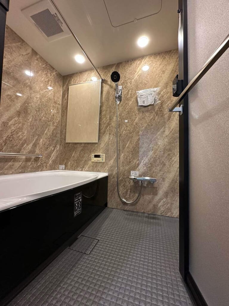 ・壁パネル:プレミアムクラスの「ストーンクォーツ」を全面張りにし、高級ホテルのような重厚感のある空間を演出。